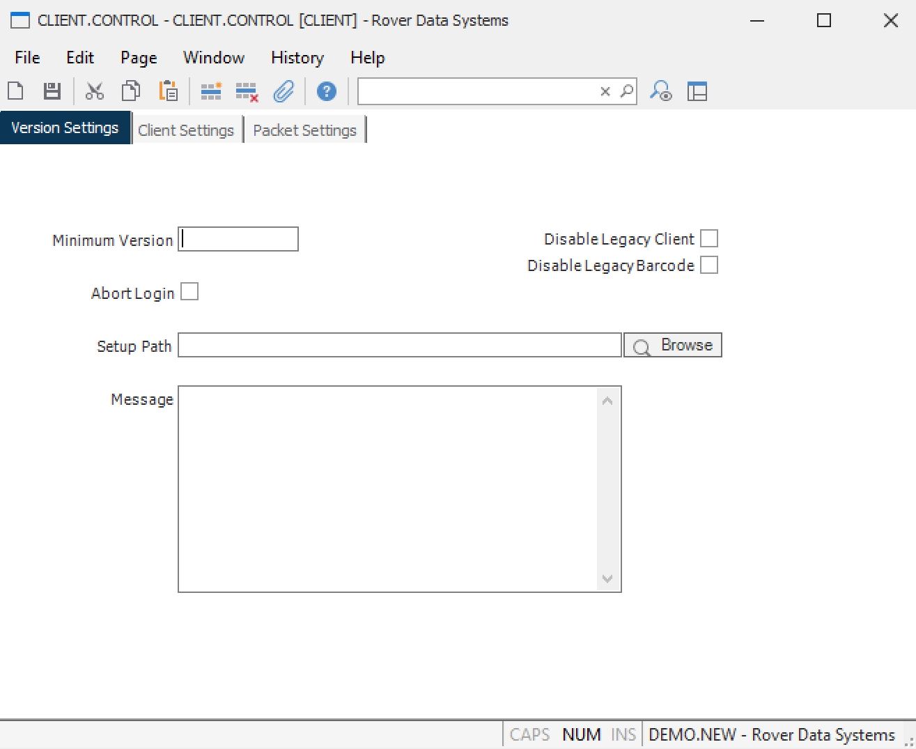 Control ID Automatically loaded with the text "CLIENT". No user entry is allowed.
