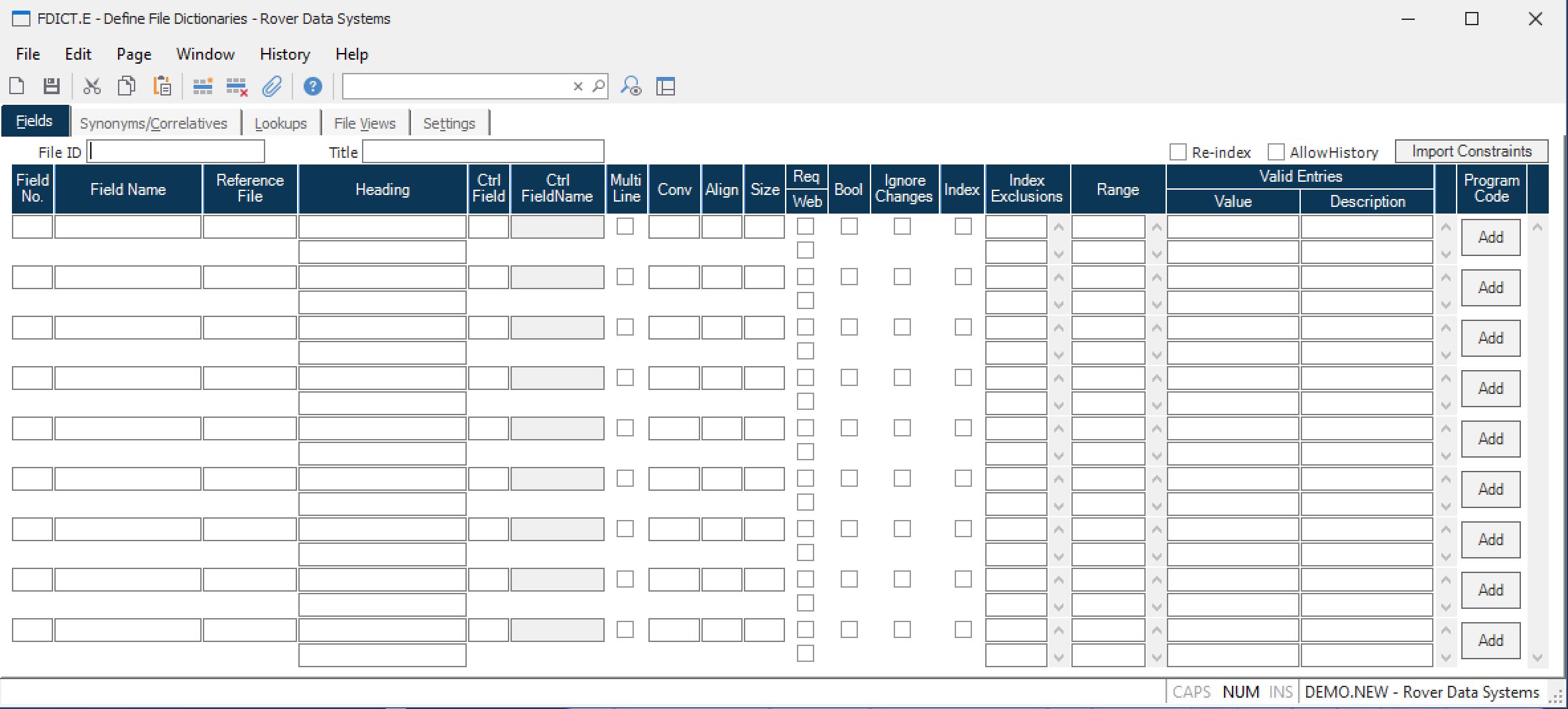 File Name Enter the name of the file for which you are building a dictionary.