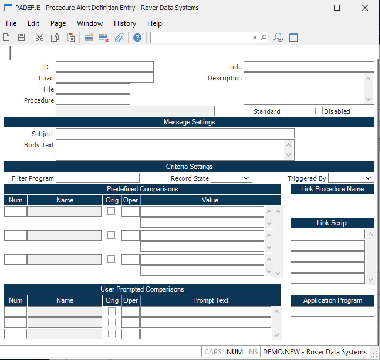 Procedure Alert Definition Entry (PADEF.E)