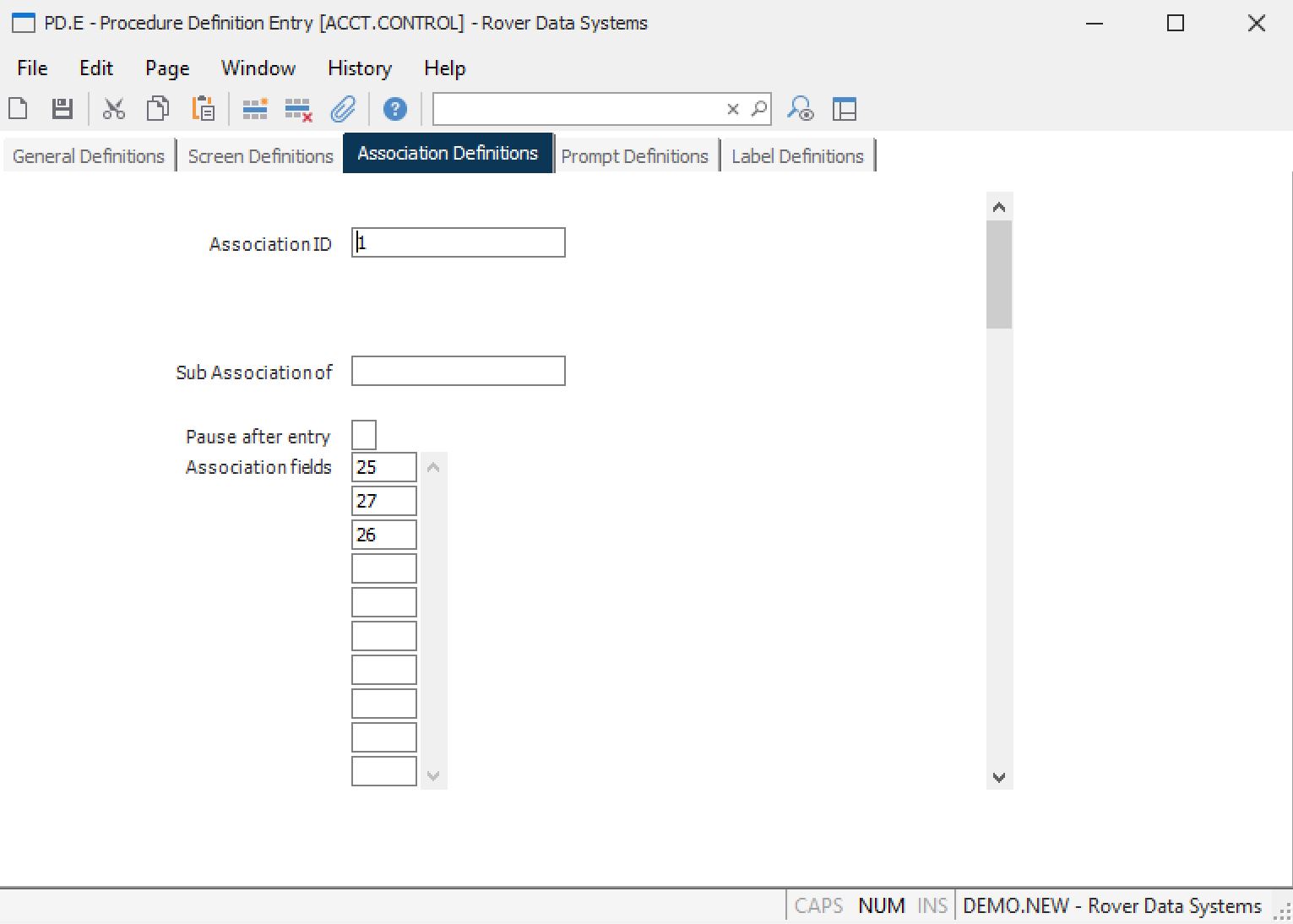 Association fields Enter the record and temporary fields included in this association. Be sure to include any fields which are not prompted but are still part of the association. This will insure that the associated data remains intact.