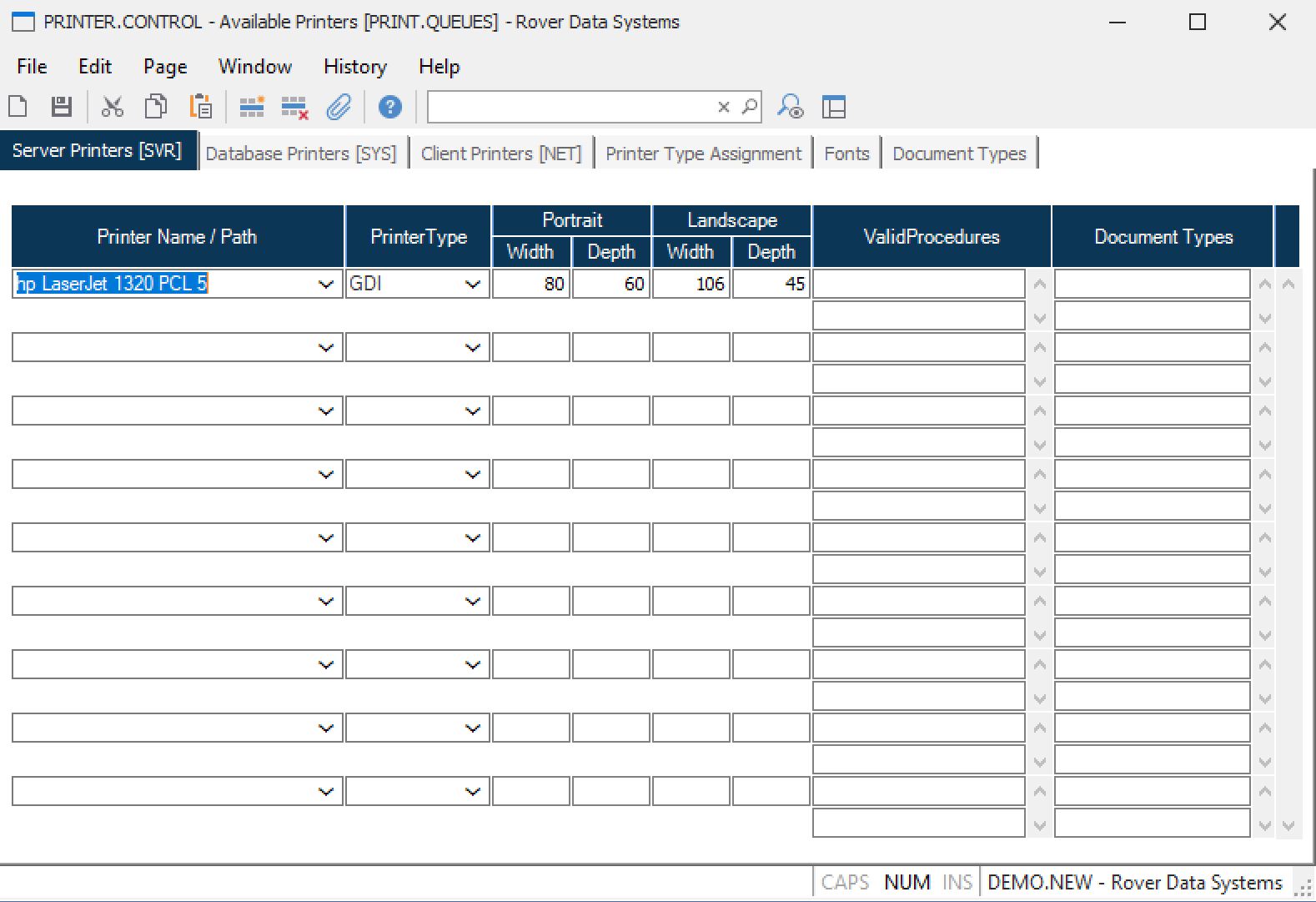 SVR Valid Procedures If the associated printer is to be used only for certain processes such as form printing then you should enter the names of the procedures which may access the printer. If any entries are made then only those procedures will be allowed to send output to the associated printer. Leave the field blank if the printer should be available to all procedures.
