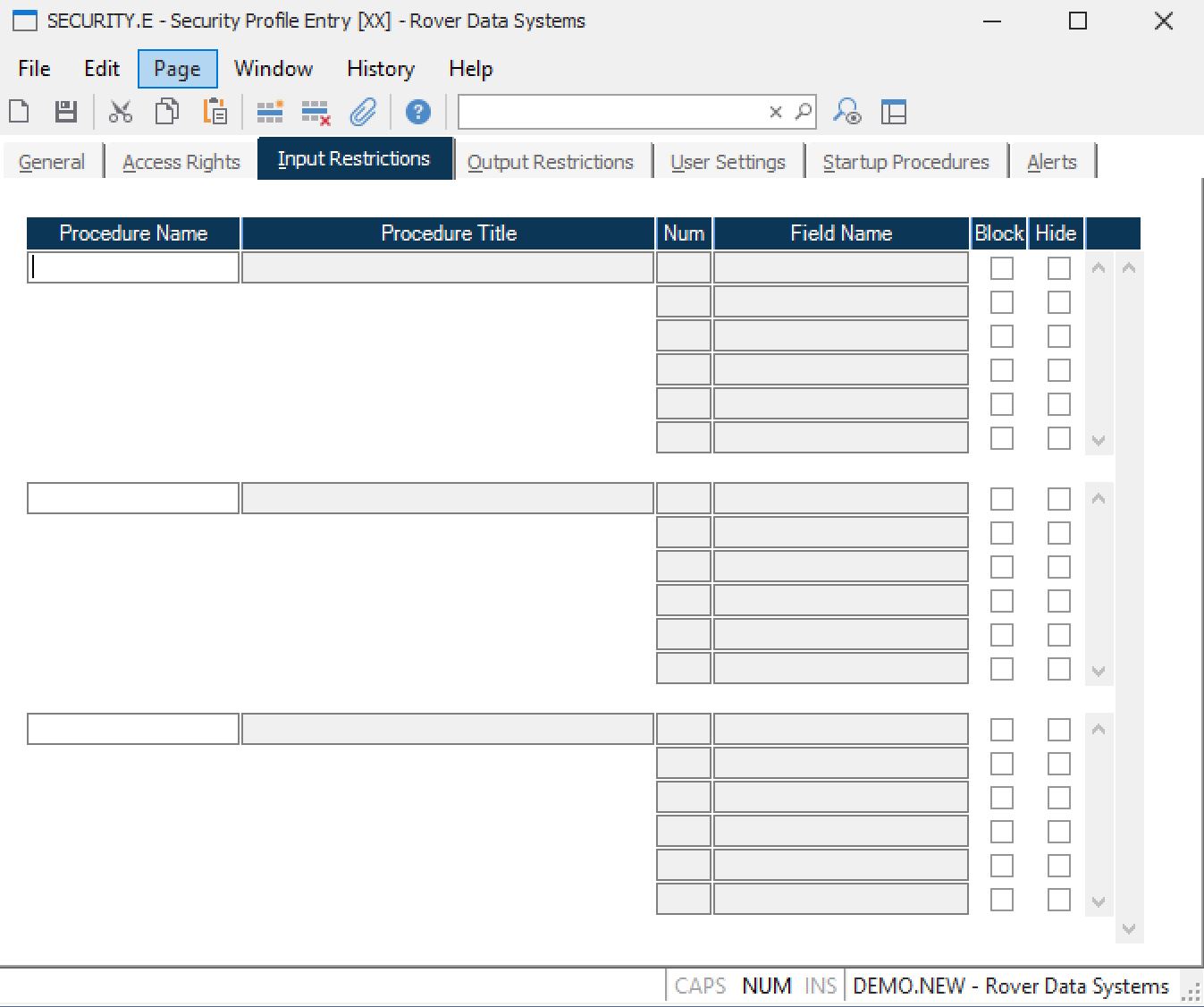 Hide Check this box if you want the data hidden from the user. When a field is hidden it is also assumed to be blocked from update, so there is no need to check the Block checkbox.