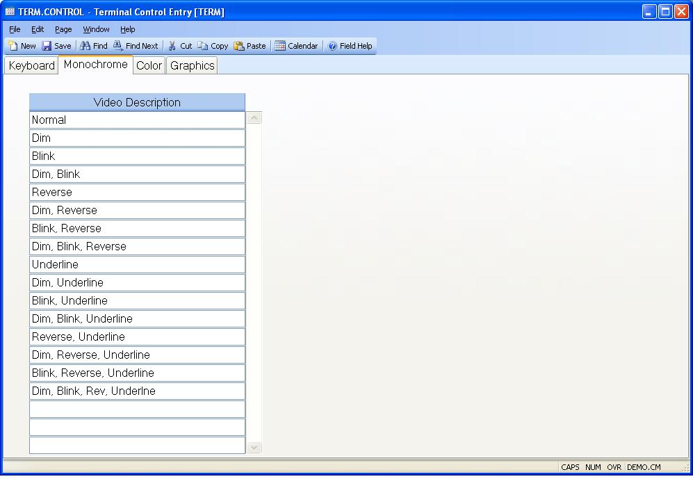 Video Description Enter the description of each video attribute that is available to monochrome terminals.