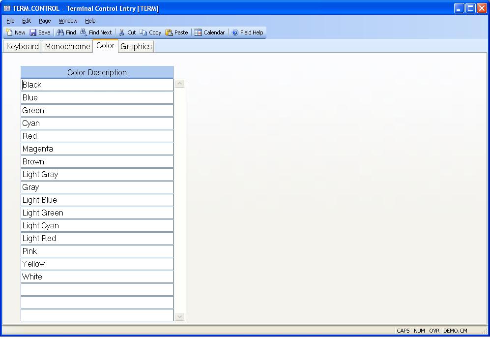 Color Description Enter the description of each color attribute that is available to color terminals.