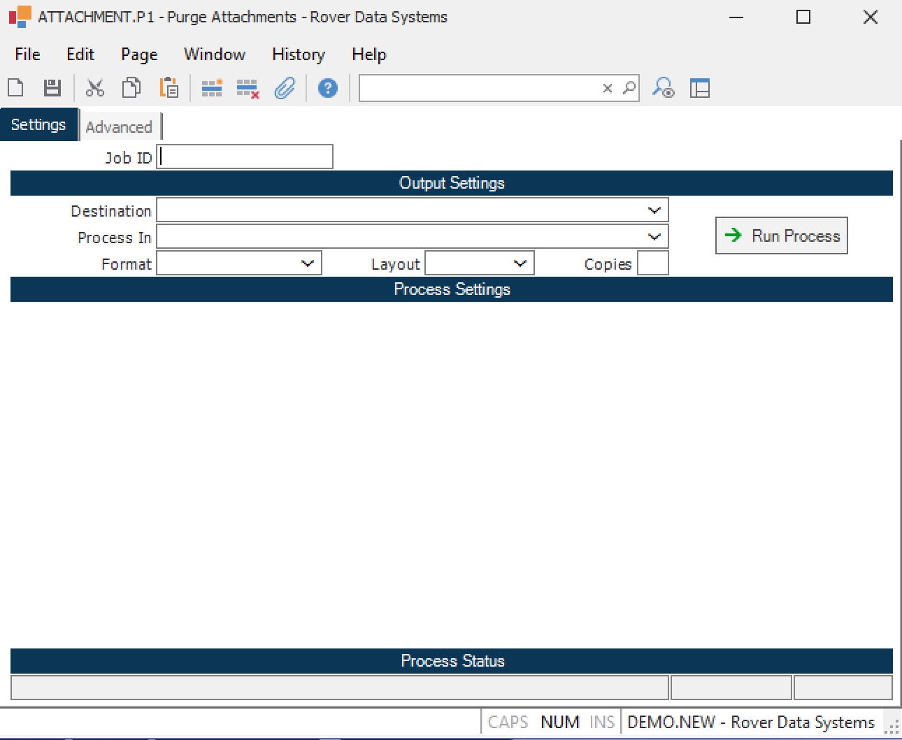 Run Process Click on the button to run the process. This performs the save function which may also be activated by clicking the save button in the tool bar or pressing the F9 key or Ctrl+S.