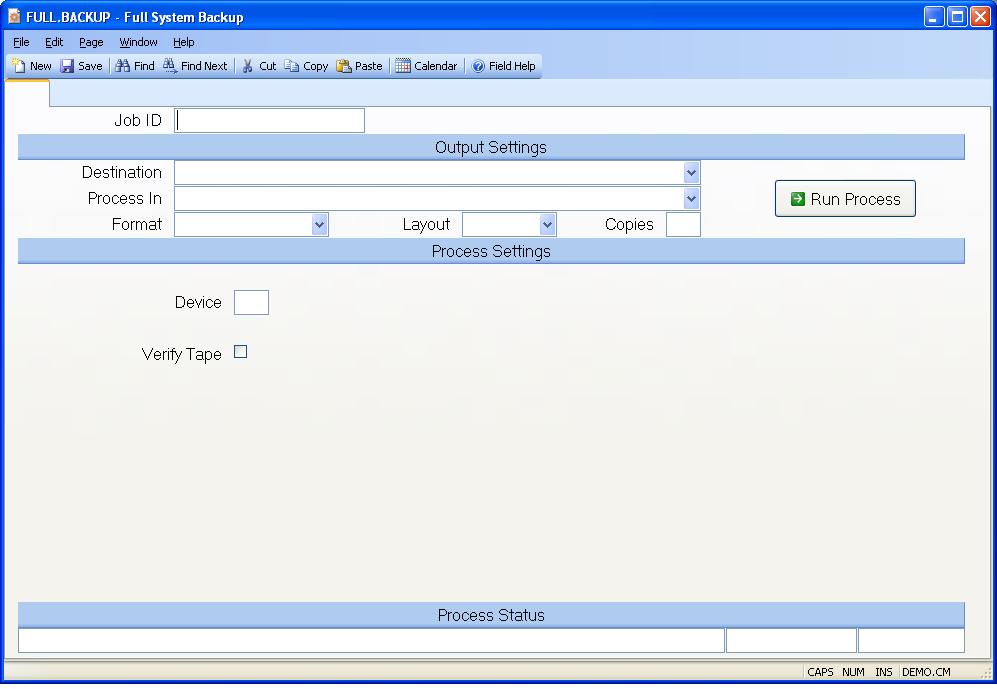 Run Process Click on the button to run the process. This performs the save function which may also be activated by clicking the save button in the tool bar or pressing the F9 key or Ctrl+S.