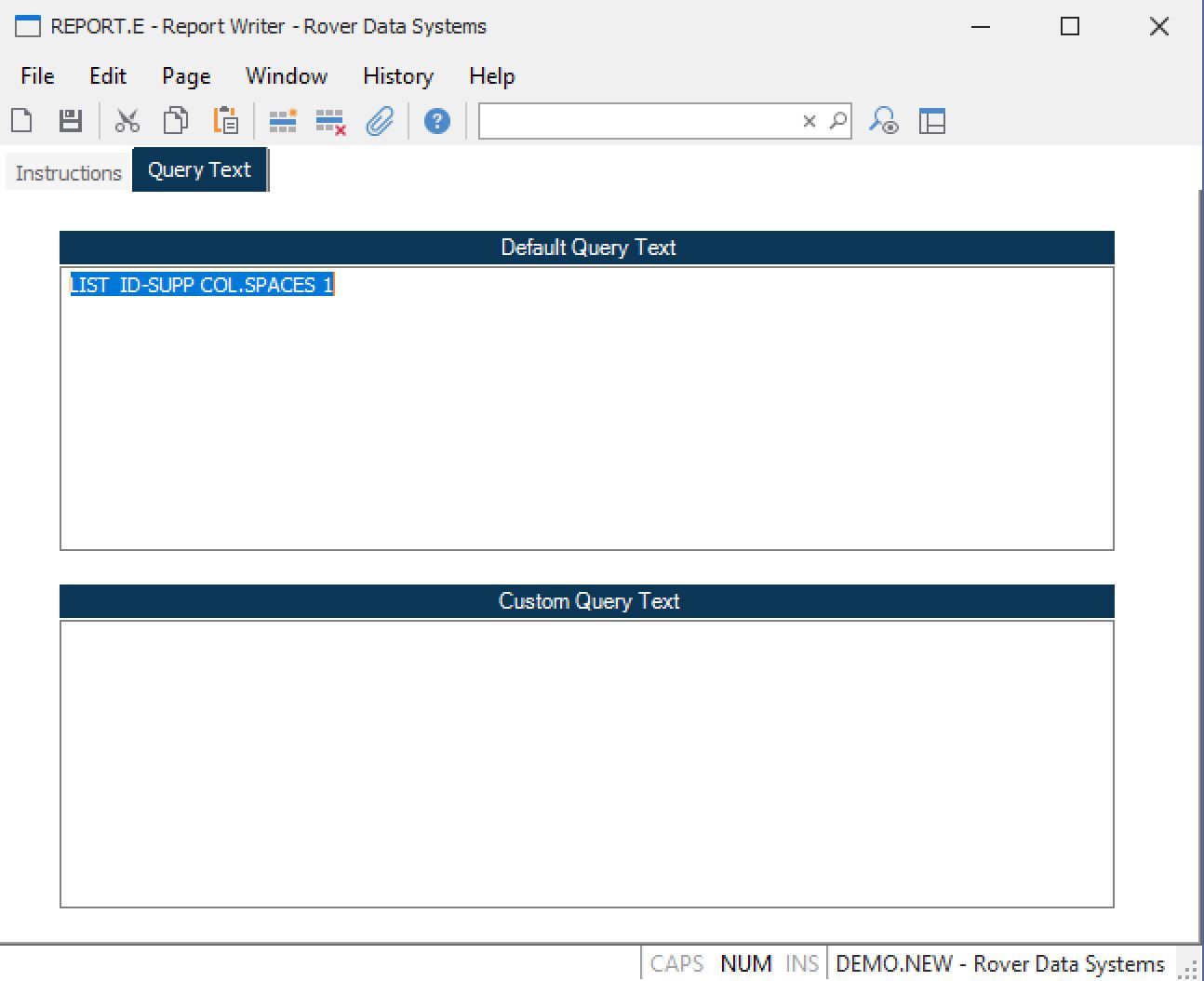 Custom Query Text If you want to adjust the default query text that is executed when the report is run, you may enter the text in this field. If desired you may copy the default text and paste it into this field for modification. If this field is empty the default text will be used.