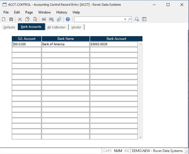 Bank Name Enter the name of the bank for the associated g/l account.