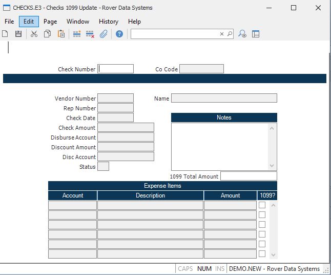 Check# Enter the check number which you want to update for notes or 1099 data.