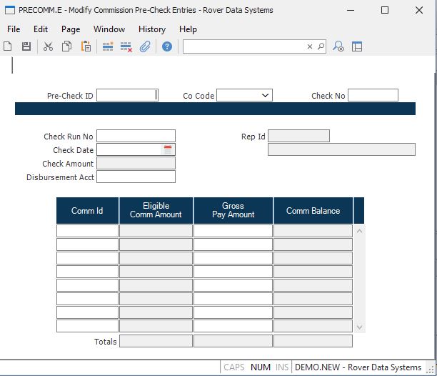 Modify Commission Pre-Check Entries (PRECOMM.E)