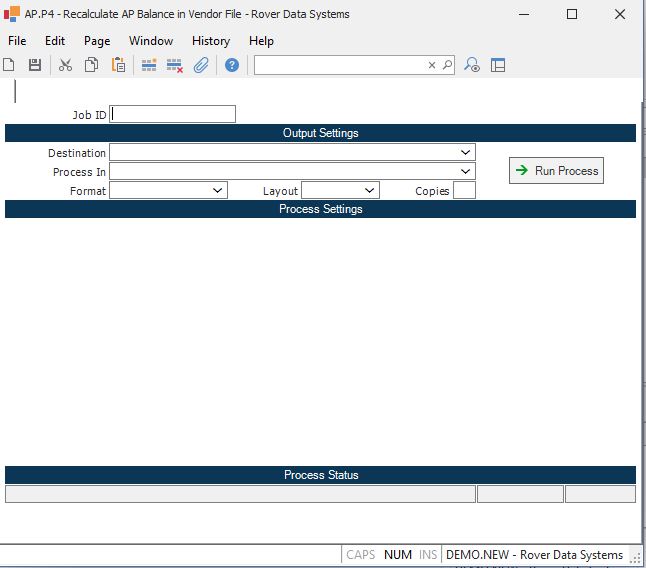 Run Process Click on the button to run the process. This performs the save function which may also be activated by clicking the save button in the tool bar or pressing the F9 key or Ctrl+S.