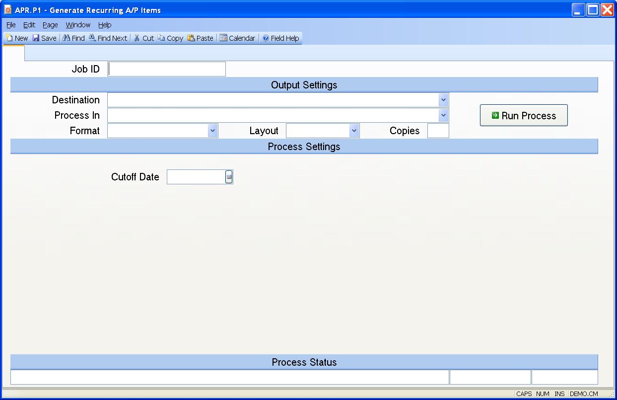 Run Process Click on the button to run the process. This performs the save function which may also be activated by clicking the save button in the tool bar or pressing the F9 key or Ctrl+S.