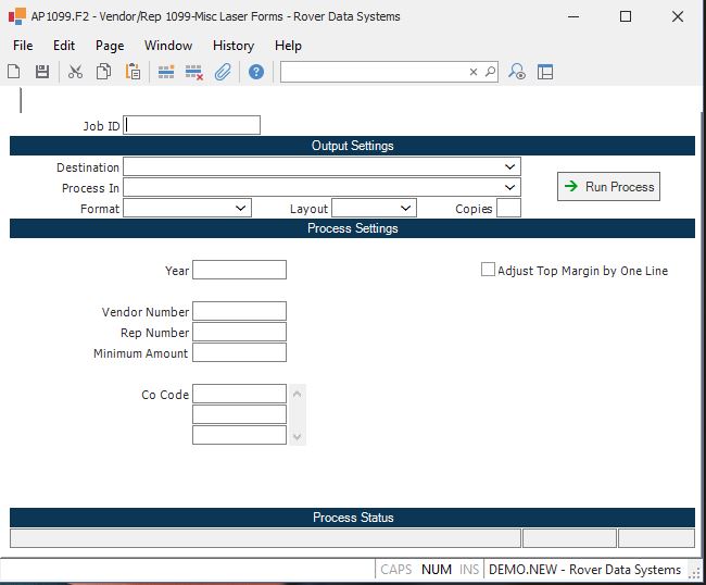 1099 Year Enter the year for which you want to report on the 1099 file. This must be entered as a four digit year.