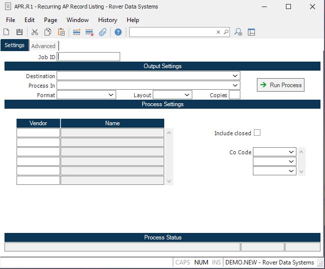Recurring AP Record Listing (APR.R1)