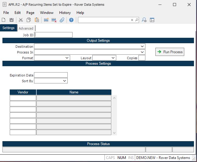A/P Recurring Items Set to Expire (APR.R2)