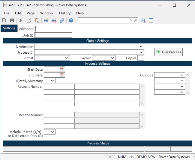 Detail/Summary If you wish to show each line of detail from the APREG file, enter 'D'. If you wish to summarize the detail into one line per account, enter 'S'. If you leave this field null, detail is assumed.