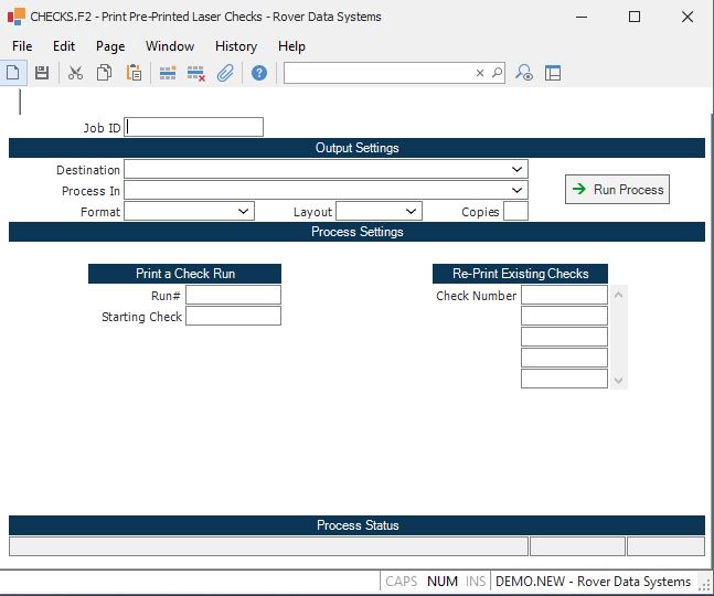 Print Pre-Printed Laser Checks (CHECKS.F2)