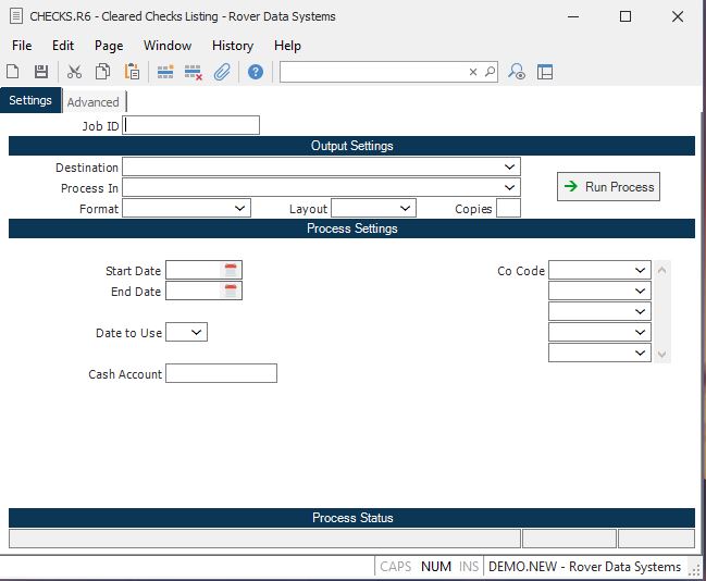 End Date Enter the end date range within which the clear date must fall to be selected for this report. Leaving this field null assumes you wish to select all checks cleared since the start date entered.