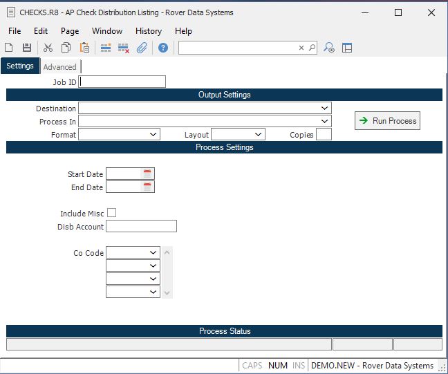 AP Check Distribution Listing (CHECKS.R8)