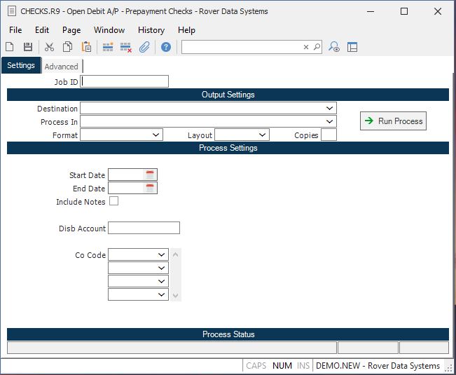 Open Debit A/P - Prepayment Checks (CHECKS.R9)