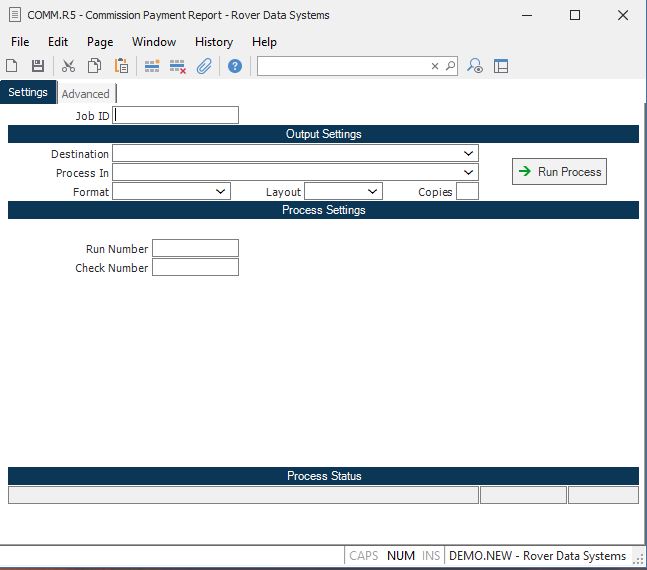 Run Process Click on the button to run the process. This performs the save function which may also be activated by clicking the save button in the tool bar or pressing the F9 key or Ctrl+S.