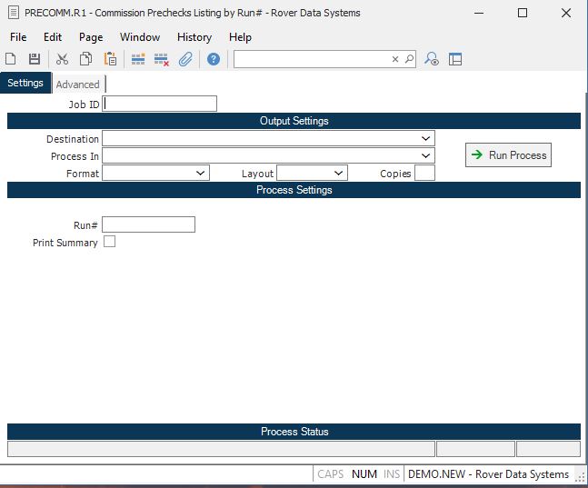 Commission Prechecks Listing by Run# (PRECOMM.R1)