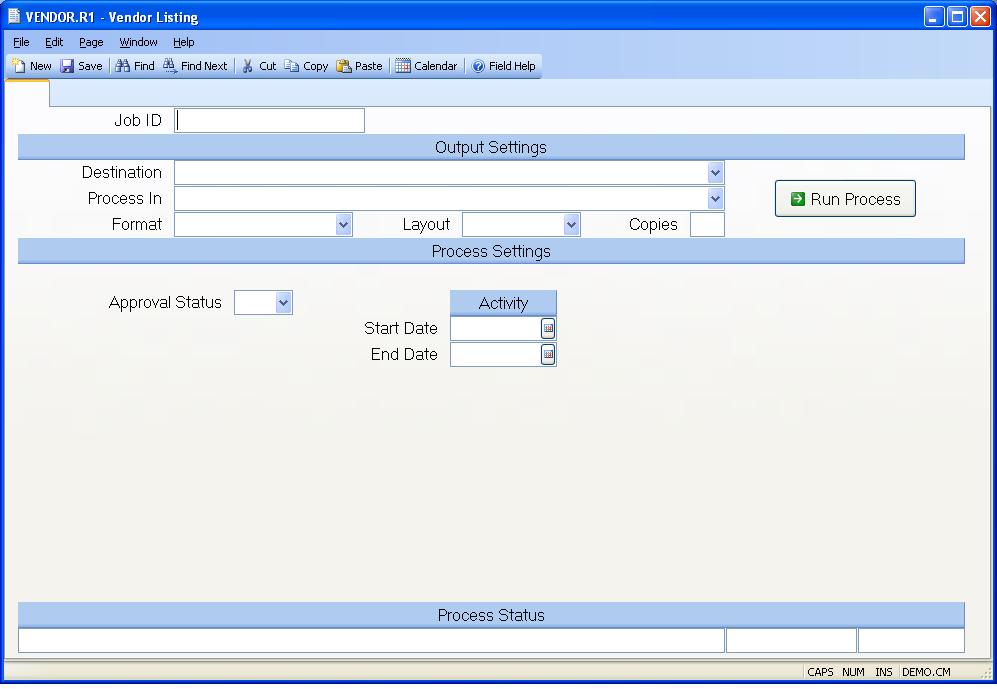 Start Date If you wish to limit the vendor that are listed to those with activity in a selected date range, enter the starting date here. Leave this field empty to include all vendors with activity since the beginning of the system use.