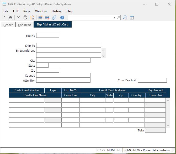 Creditcard Address If the associated AVS box is checked the street address in this field will be used for address verification. If the credit card was loaded from the customer master record the address will also be loaded from there. Otherwise, the address is loaded from the ship address. Note: Only the first line of the street address (i.e. 123 Main Street) should be entered into this field. Do not include the city, state or country.