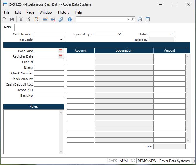 Cash# If you are entering a new cash item, leave this field null and the next sequential cash number will be assigned at file time. If you wish to review a previously posted entry, enter the cash number of that item.