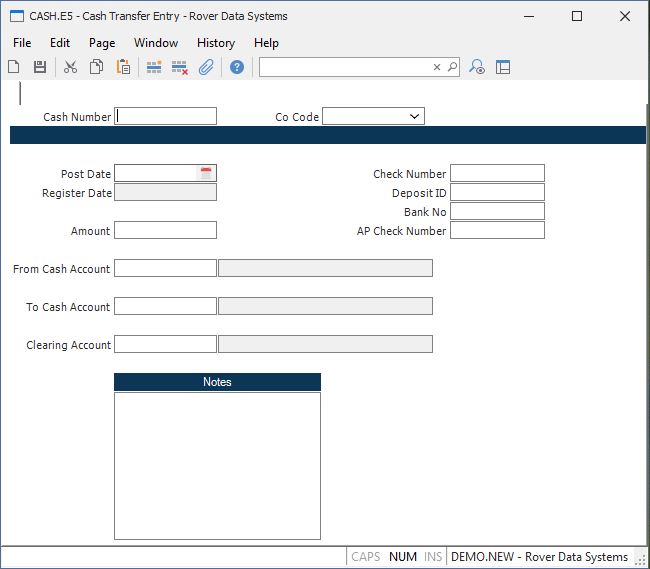 Cash.Account Enter the cash account number into which the amount is to be transferred.