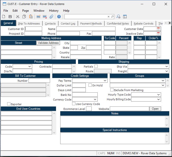 Customer Entry (CUST.E)