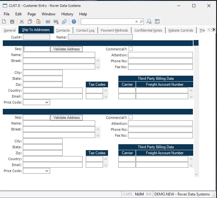 Ship Seq Enter the sequence id to be assigned to the following shipping address. A sequence id must be entered before the system will allow you to enter the shipping address.
