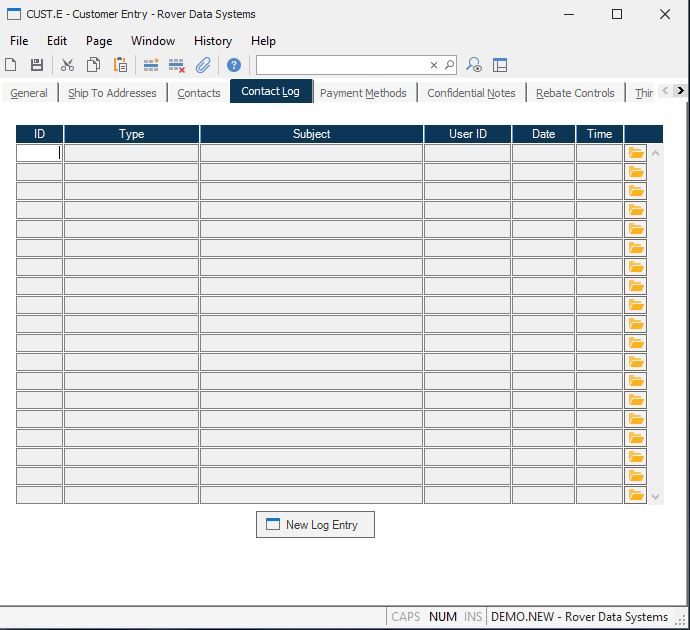 New Log Entry Click this button to create a new entry to the log file.