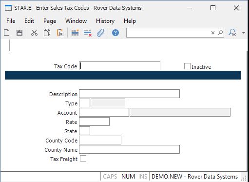Desc Enter the description of the sales tax code being entered. This is a free-form field which will be displayed when the tax code is entered elsewhere in the system.