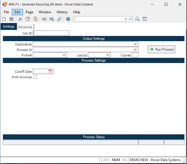 Cutoff Date Enter the date which will be compared to the dates contained in the recurring AR records to select which items are to generate invoices.
