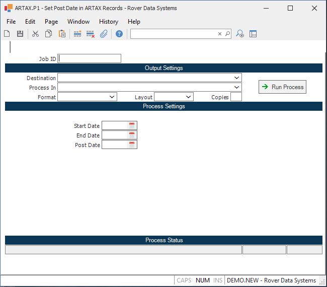 Post Date Enter the post date which is to be placed into each ARTAX record selected.