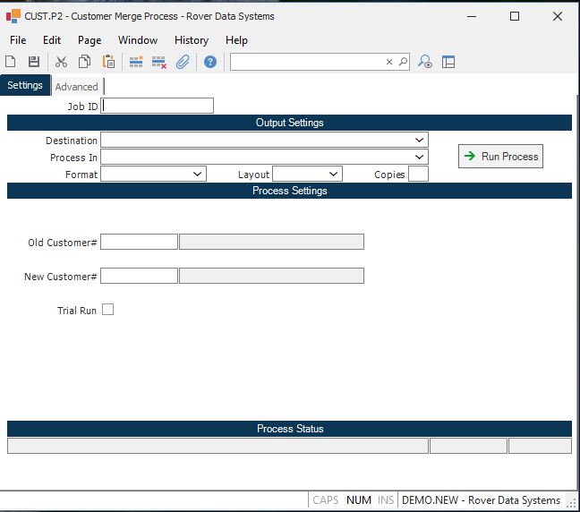 Old Cust Enter the customer number that is to be replaced by the new customer number. All files will be updated at file-time with the "new" customer number.