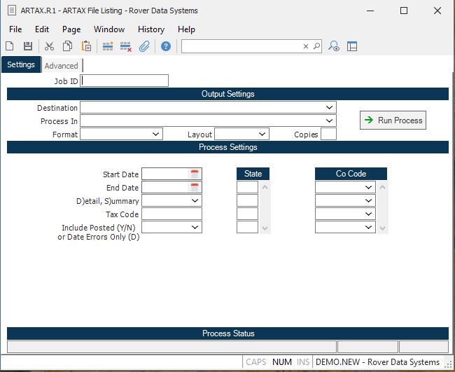 Detail If you wish to show each line of detail from the ARTAX file, enter 'D'. If you wish to summarize the detail into one line per code, enter 'S'. If you leave this field null, detail is assumed.