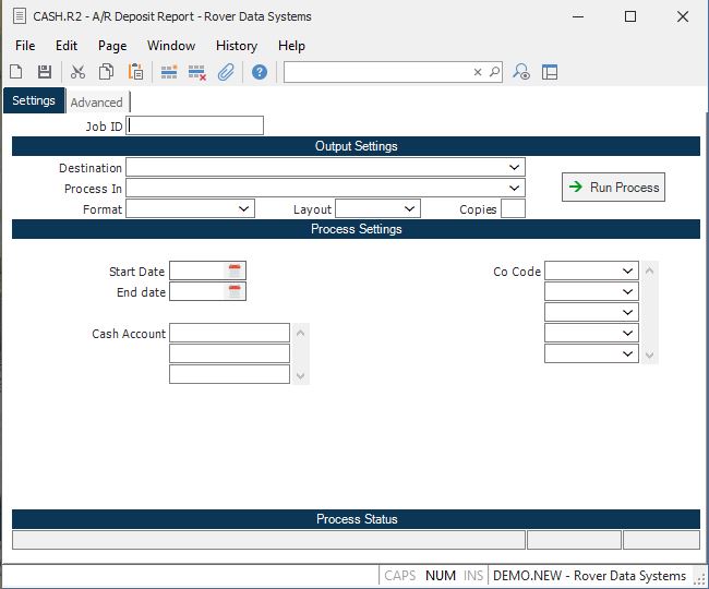 Cash Account Enter the cash accounts you wish to include in this report. If left blank, all accounts will be selected.