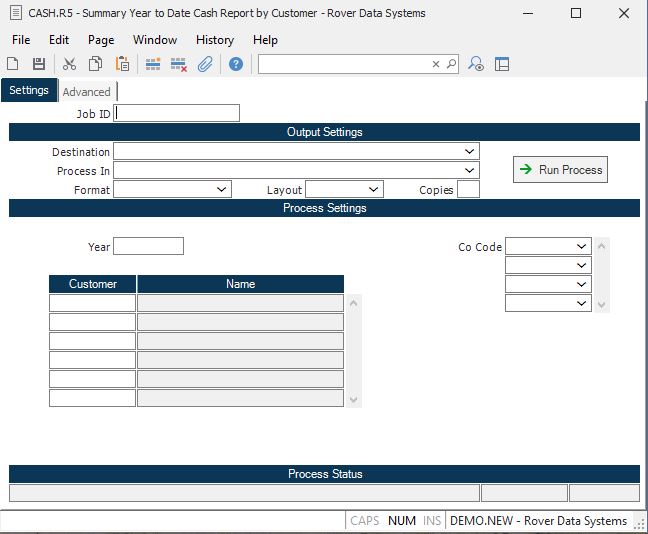 # Summary Year to Date Cash Report by Customer (CASH.R5)