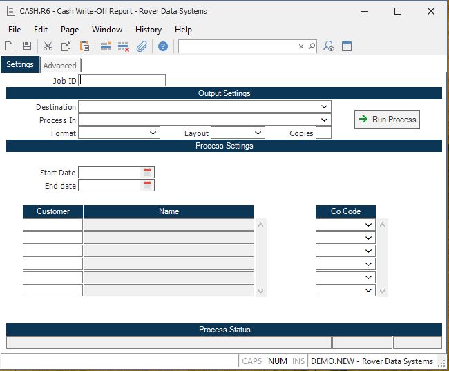 Run Process Click on the button to run the process. This performs the save function which may also be activated by clicking the save button in the tool bar or pressing the F9 key or Ctrl+S.