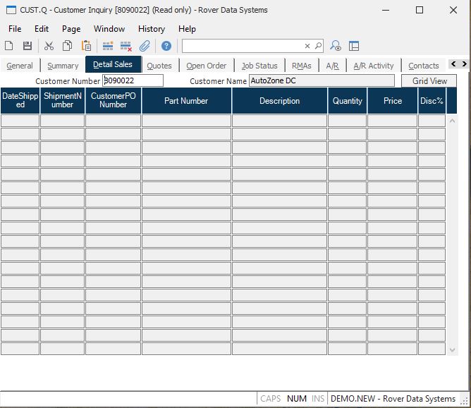 Grid View Select this button to display the contents of this screen in a grid viewer.