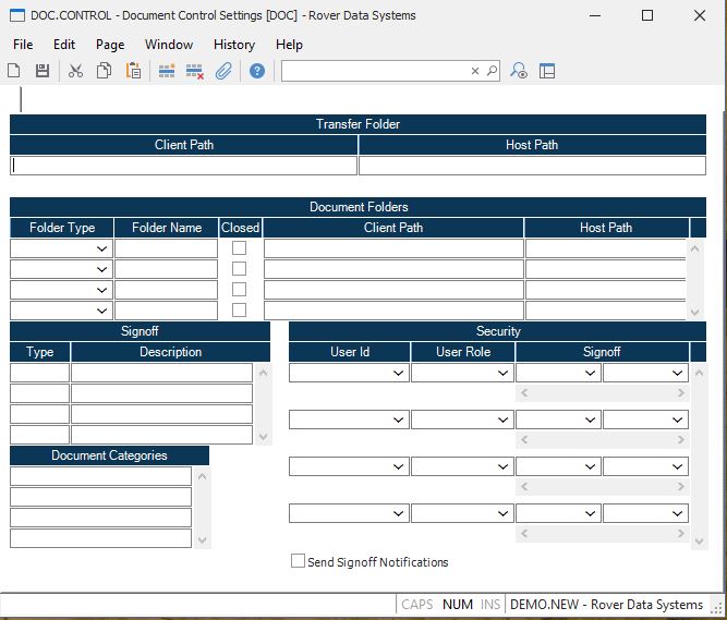 Transfer Folder Client Path Enter the full path to be used by the client to access the folder to be used as the interim location into which files will be copied before they are moved to the document folder. This folder must be accessible by all users of the system that are allowed to add documents and they should be granted write permissions to the folder. Users need the ability to add documents without disturbing existing documents. When a user adds a file as a document the client program on his workstation copies the file into the folder defined in this field and adds a unique key to the file name. When this is completed the server moves the file from the transfer folder into the document folder.