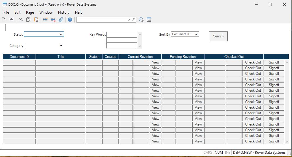Pending Rev This field displays the Document's pending revision, if a pending revision has been inititated.