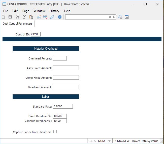 Control ID The ID to the cost control record is "COST" and is automatically loaded by the system.