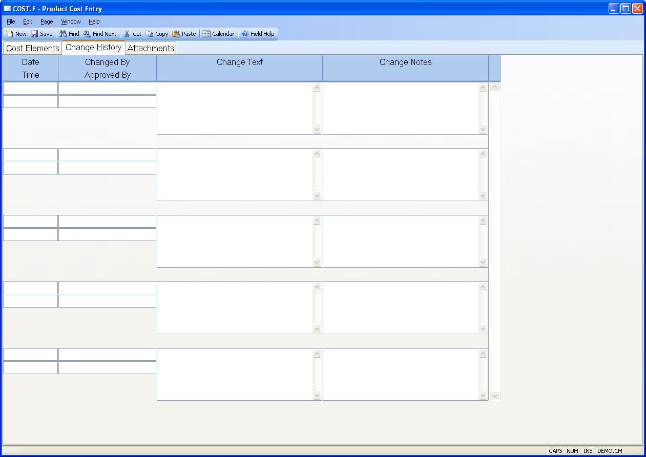 Change Date The date the COST record was changed. This is only stored if one of two conditions are met: 1) The parameters are set in CHANGE.CONTROL and a change was made that met the criteria for storing change history or 2) Change notes were entered by the user. This field is system controlled.