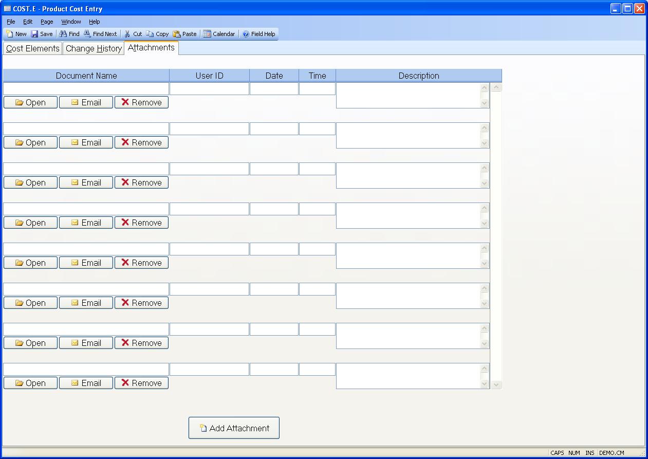 Product Cost Entry (COST.E)