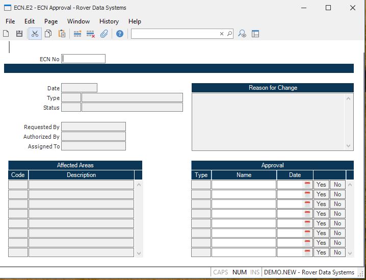 ECN No Enter the number of the ECN you wish to create or change. If you leave the ECN number blank, the next available sequential number will be assigned as the ECN number.