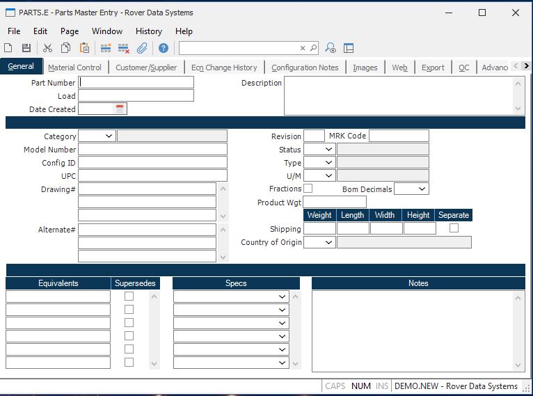 Load If you wish to load an existing part number, enter that number here. All information from that part record will be loaded. This field is only used with new part records and is not functional
