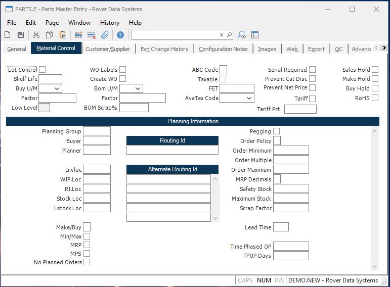 MRP Part Check this box if the part is to be included in the MRP processing.
